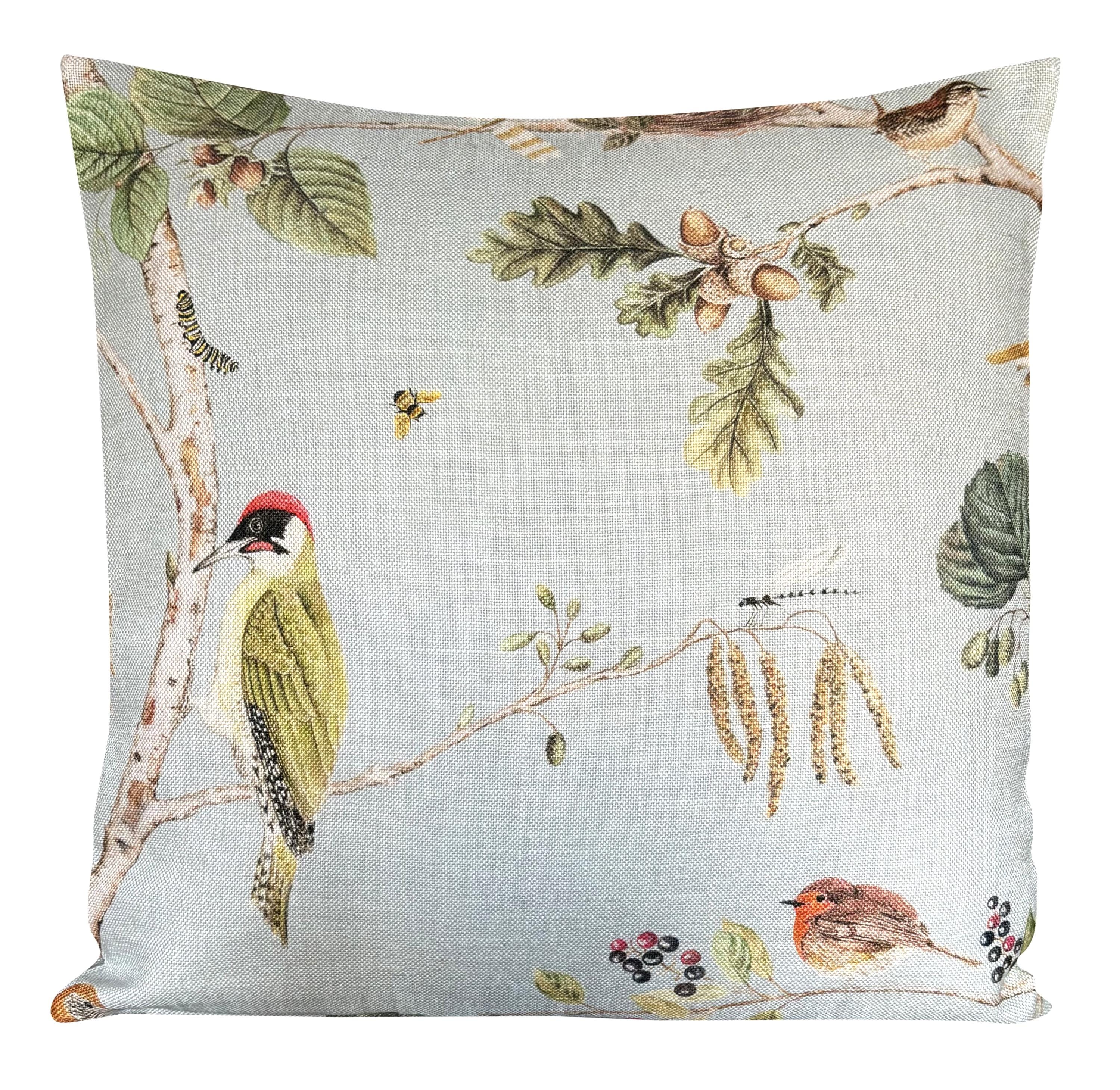 SANDERSON WOODLAND CHORUS CUSHION COVER in Blue Colourway.