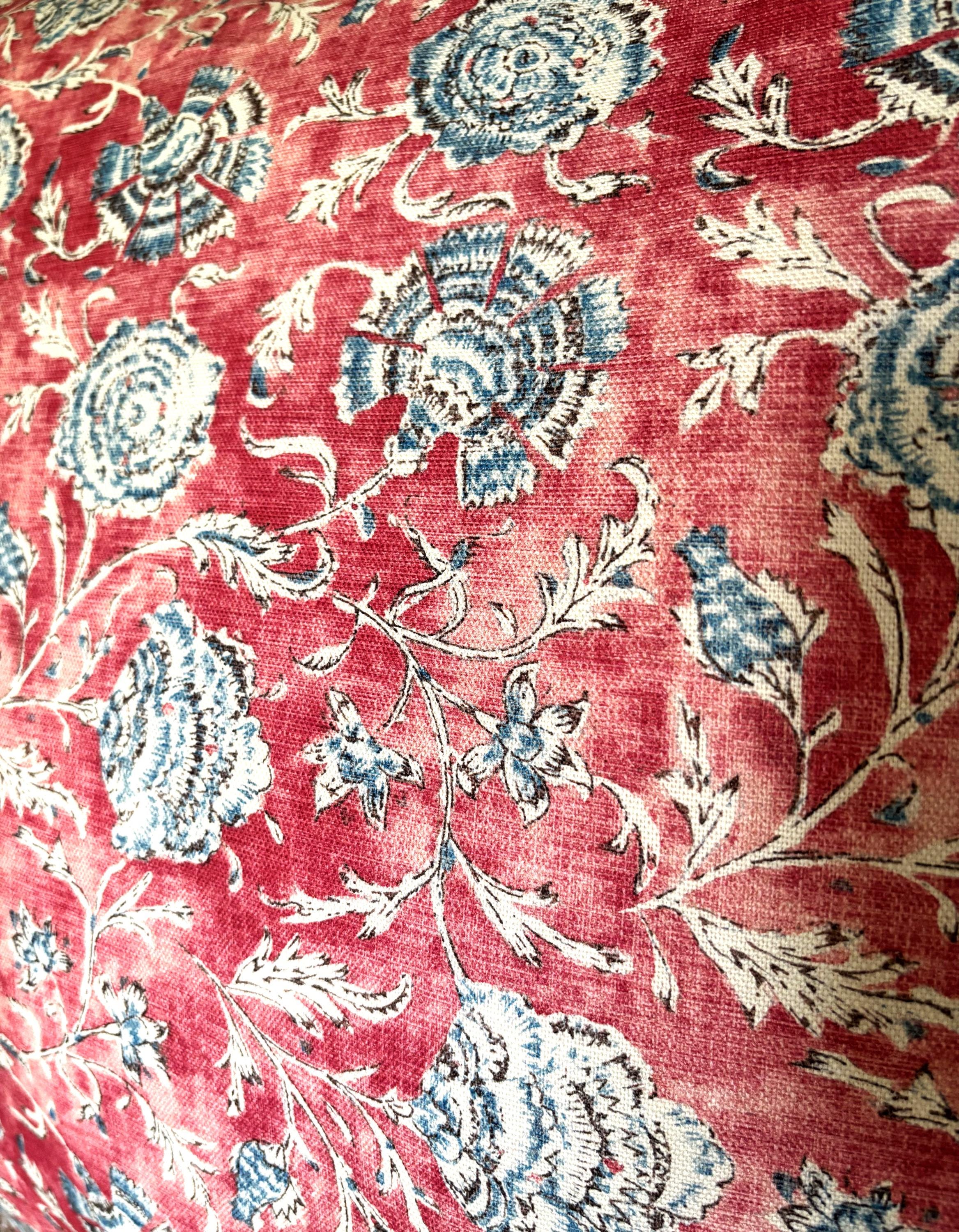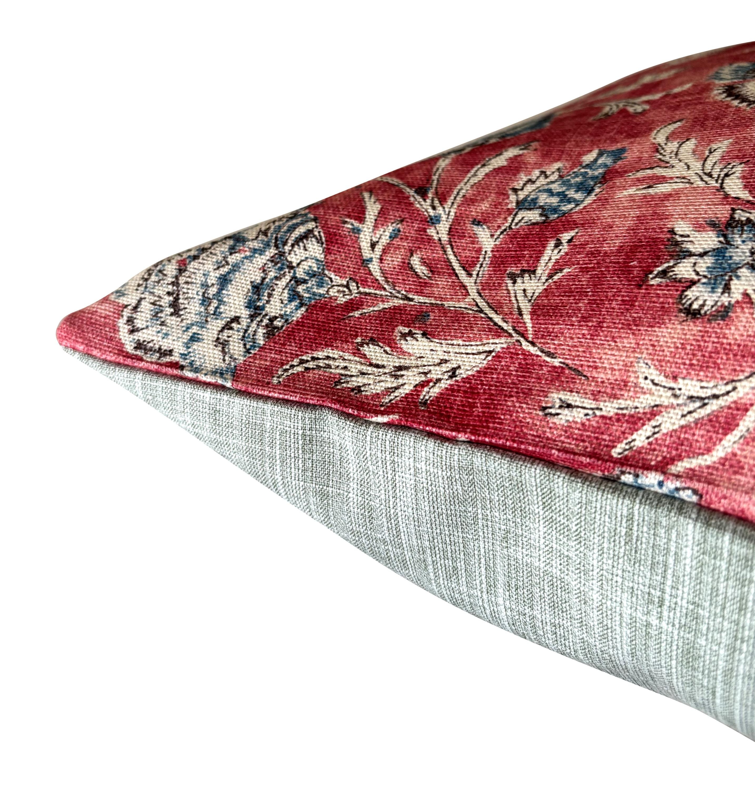 The cushion covers are backed in the Sanderson powder blue linen and have a concealed zip on the bottom seam. All seams are over-locked to prevent fraying.