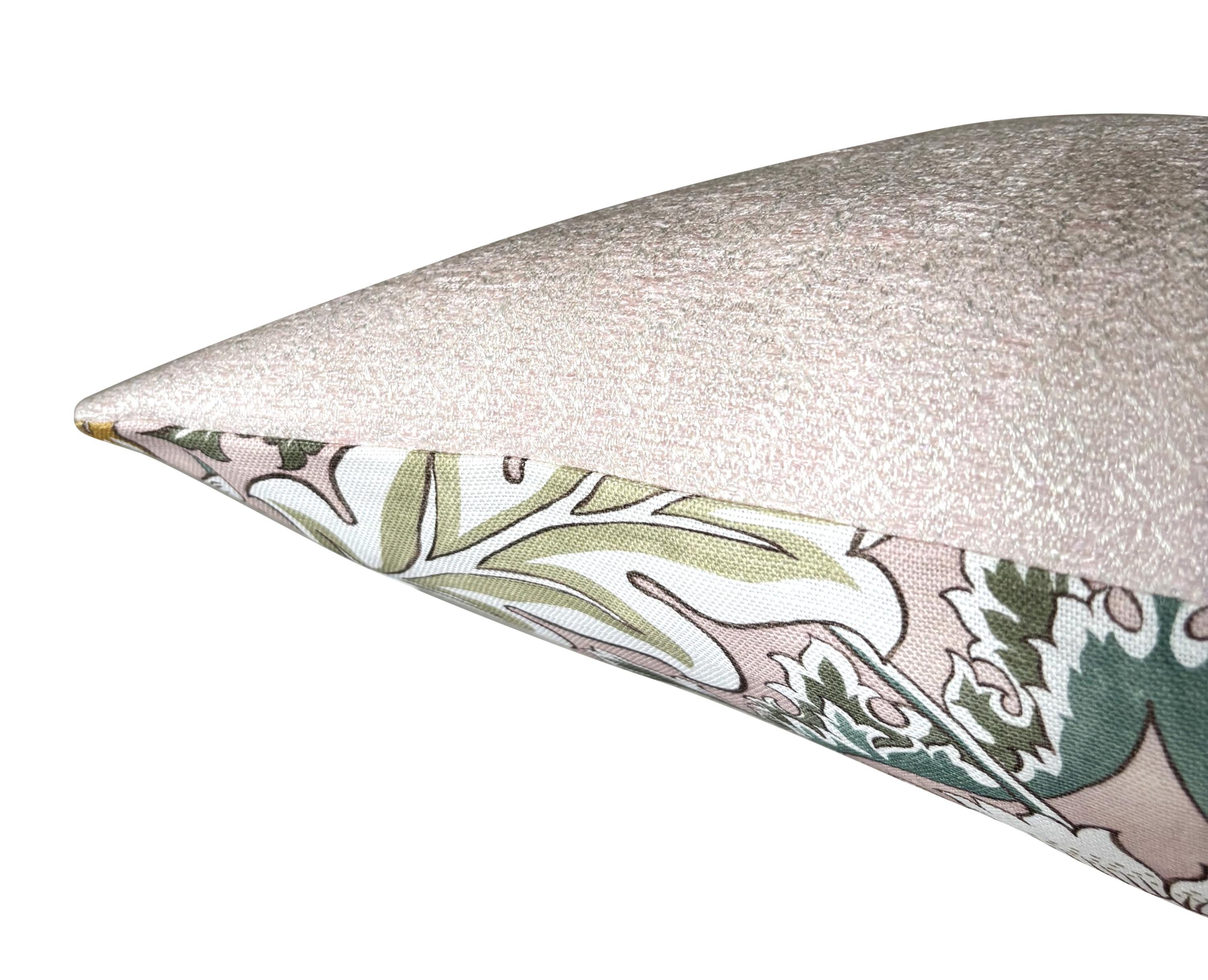 The cushion covers are backed in opulent blush velvet chenille with a concealed zip on the bottom seam.