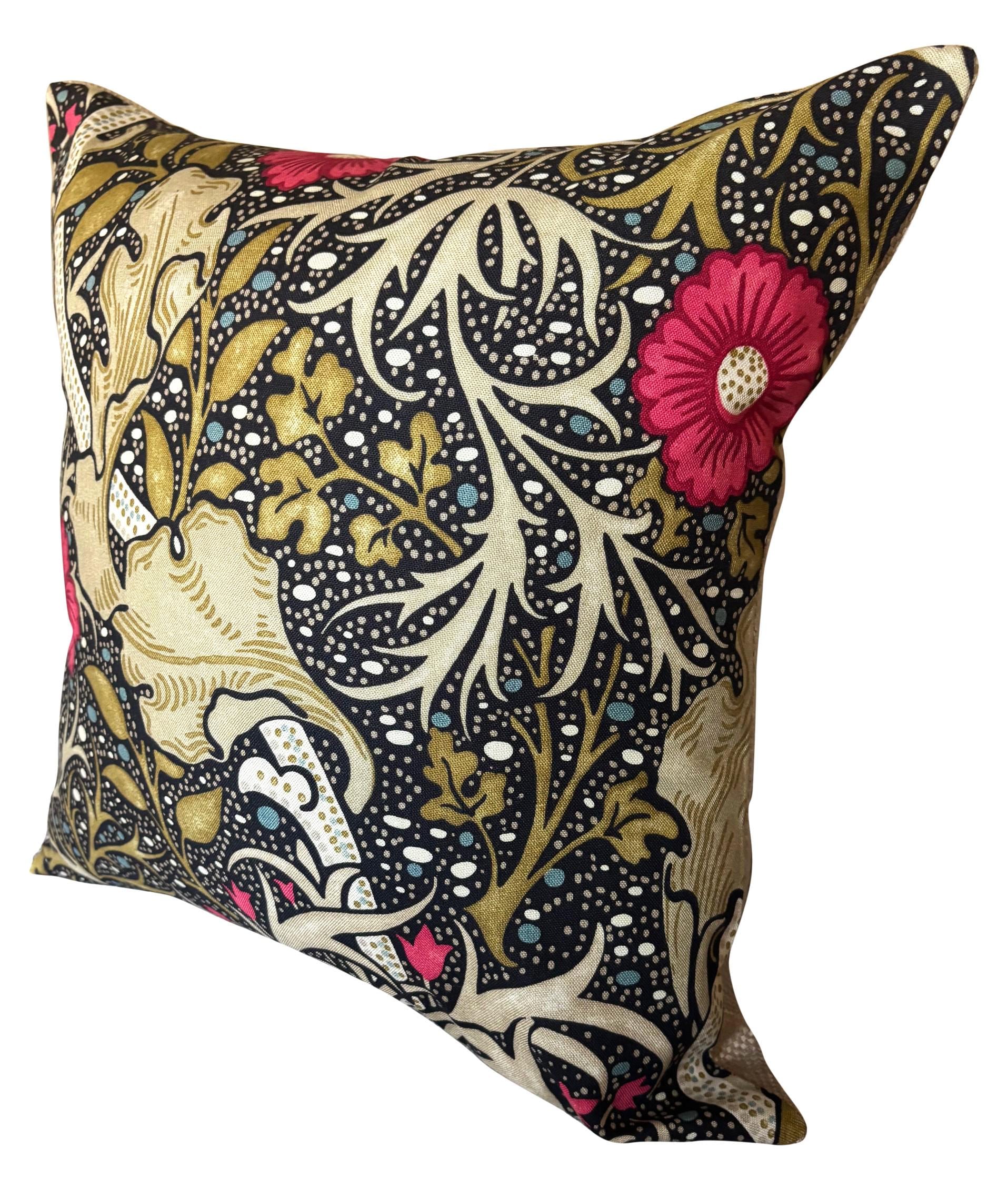 MORRIS & CO SEAWEED CUSHION COVER in Ebony & Poppy Colourway.