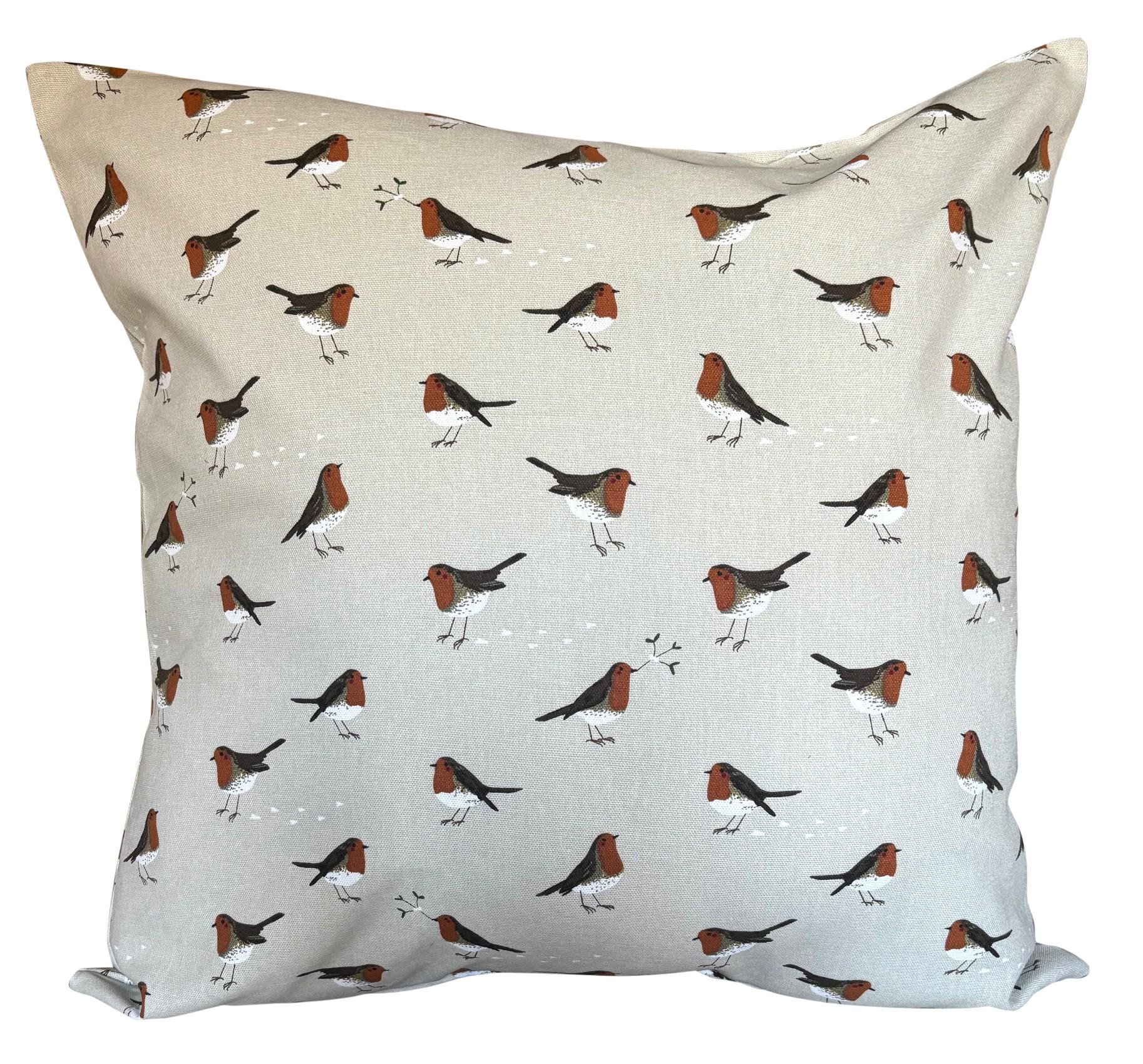 A painterly watercolour print of robins 100% linen - a beautiful addition to Christmas décor!