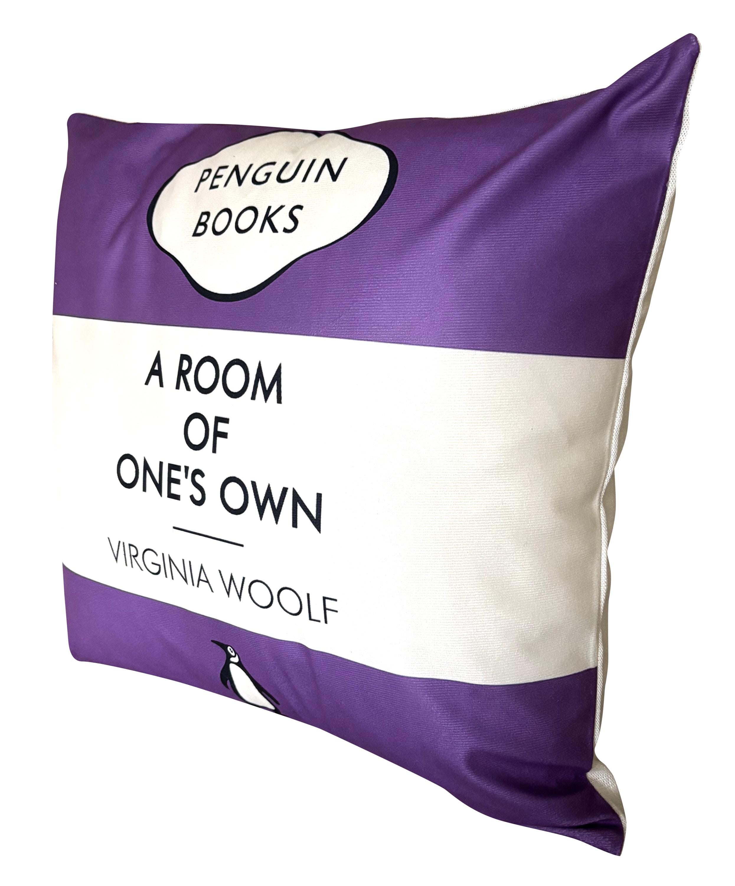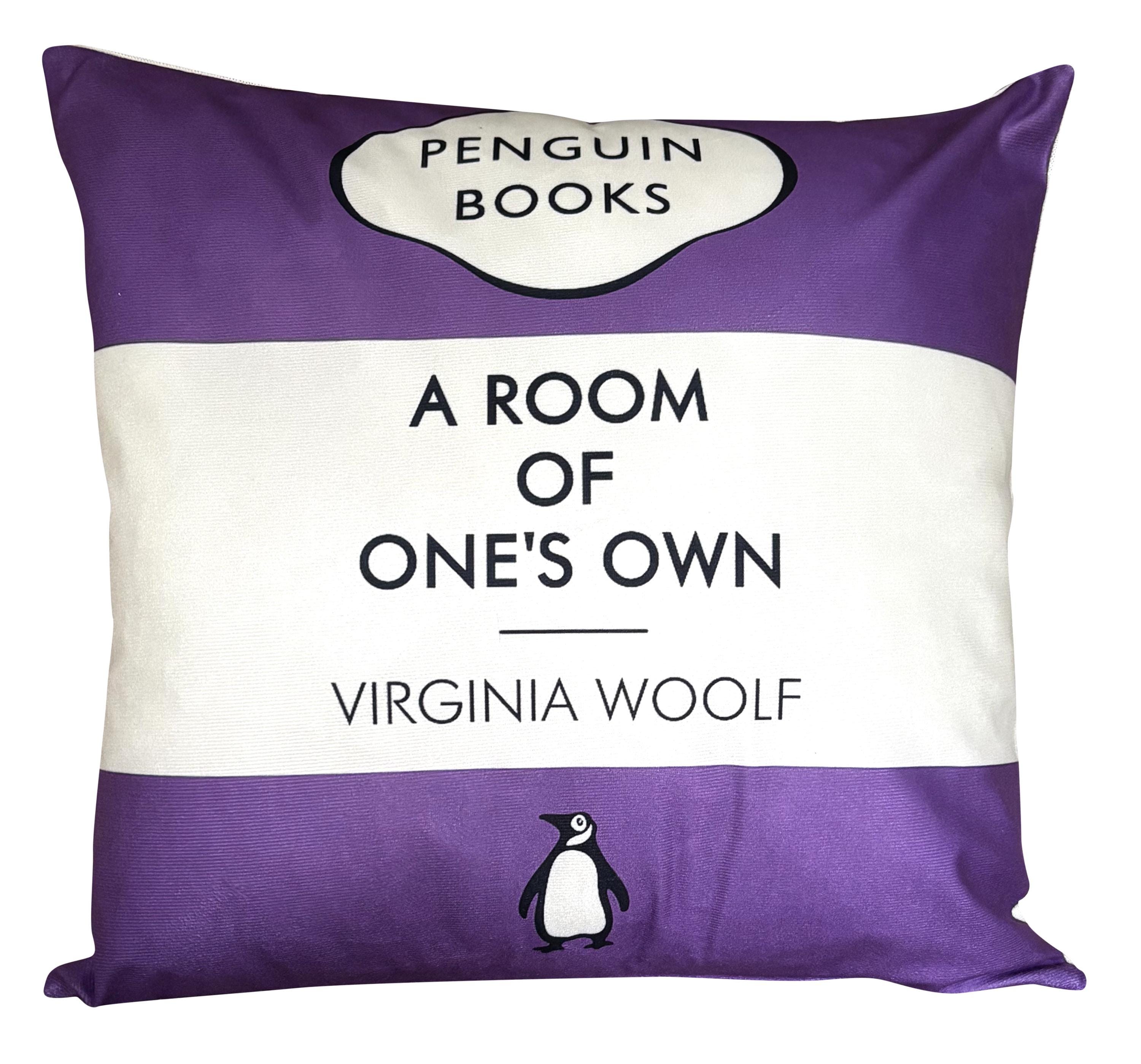 Retro classic Woolf novel cushion cover, backed in Sanderson linen weave in cream - Perfect Gift and eclectic addition to your decor!