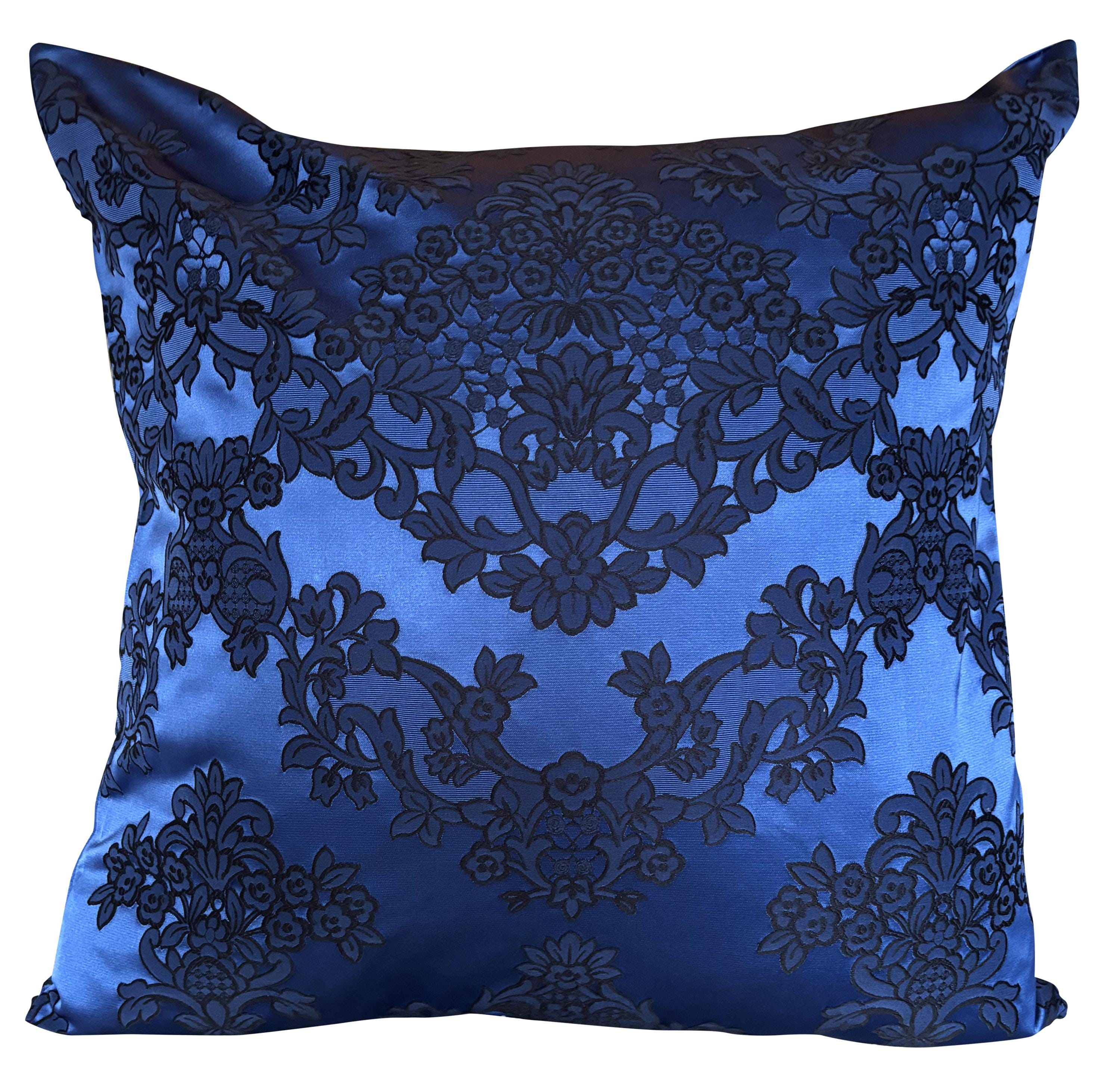 DESIGNERS GUILD SATIN DAMASK CUSHION COVER 22'' X 22'' in Royal Blue colourway.