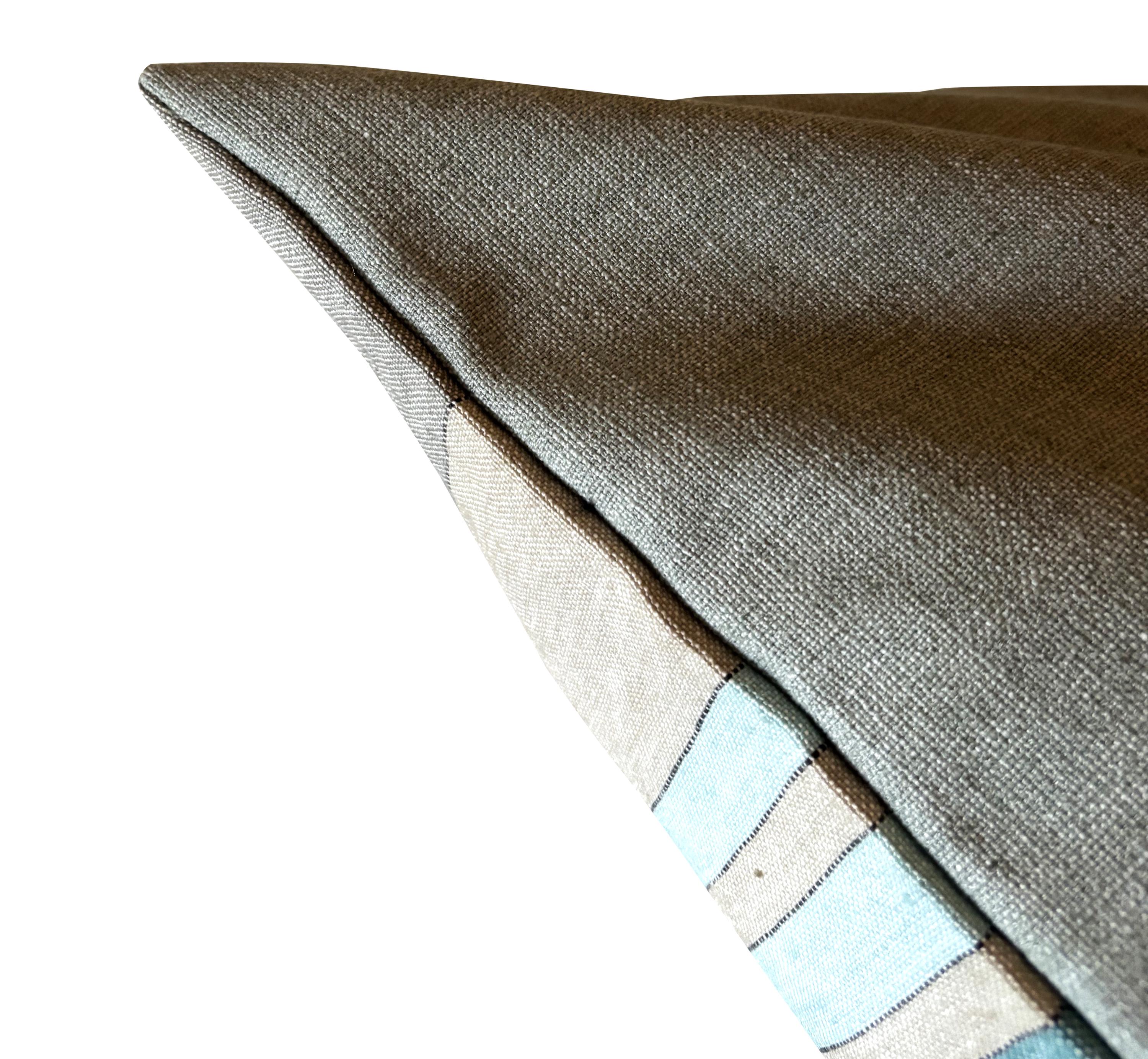 The cushion covers are backed in blue linen fabric by Sanderson with a concealed zip on the bottom seam.