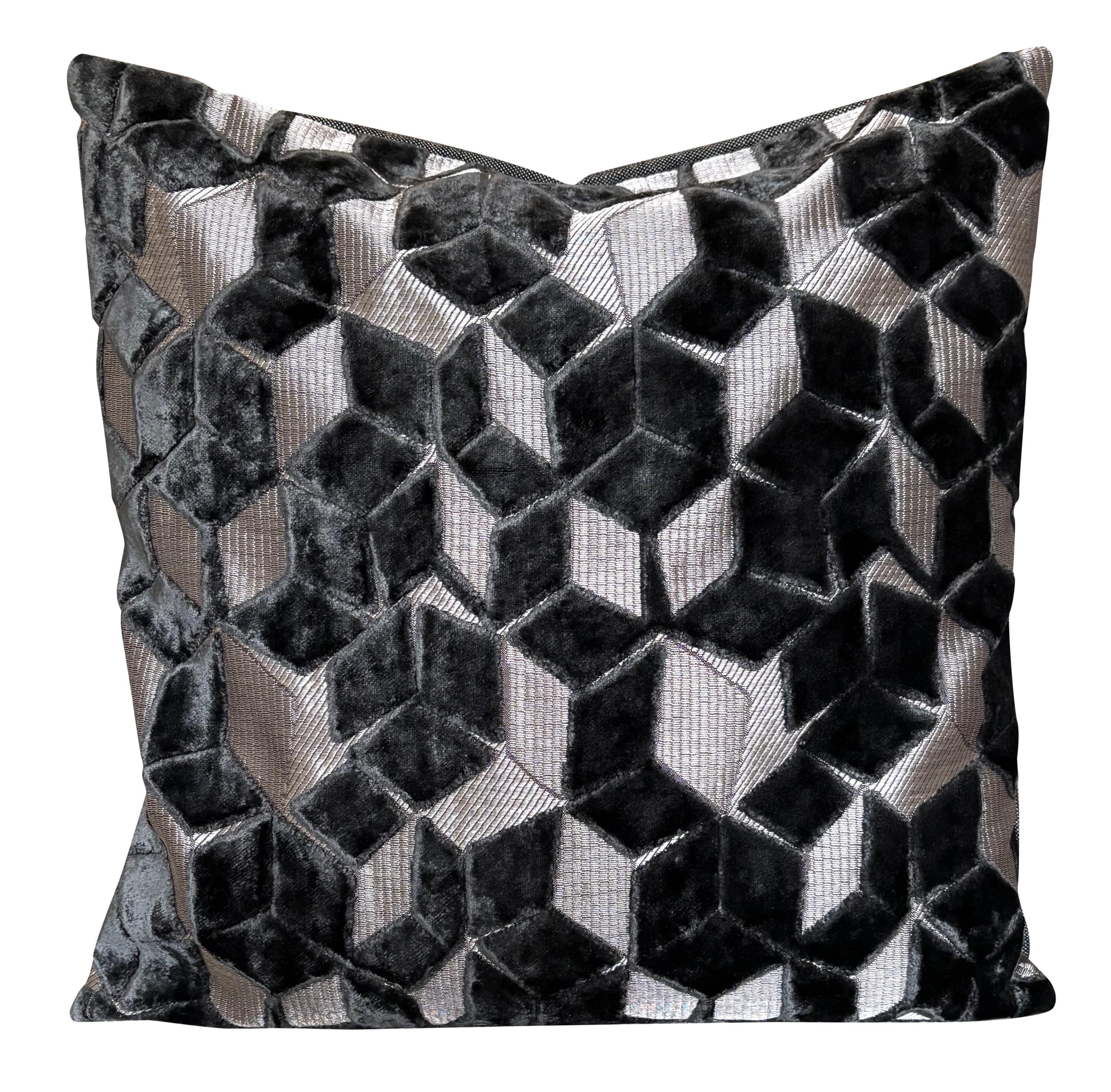 A geometric velvet in luxurious black and silver.