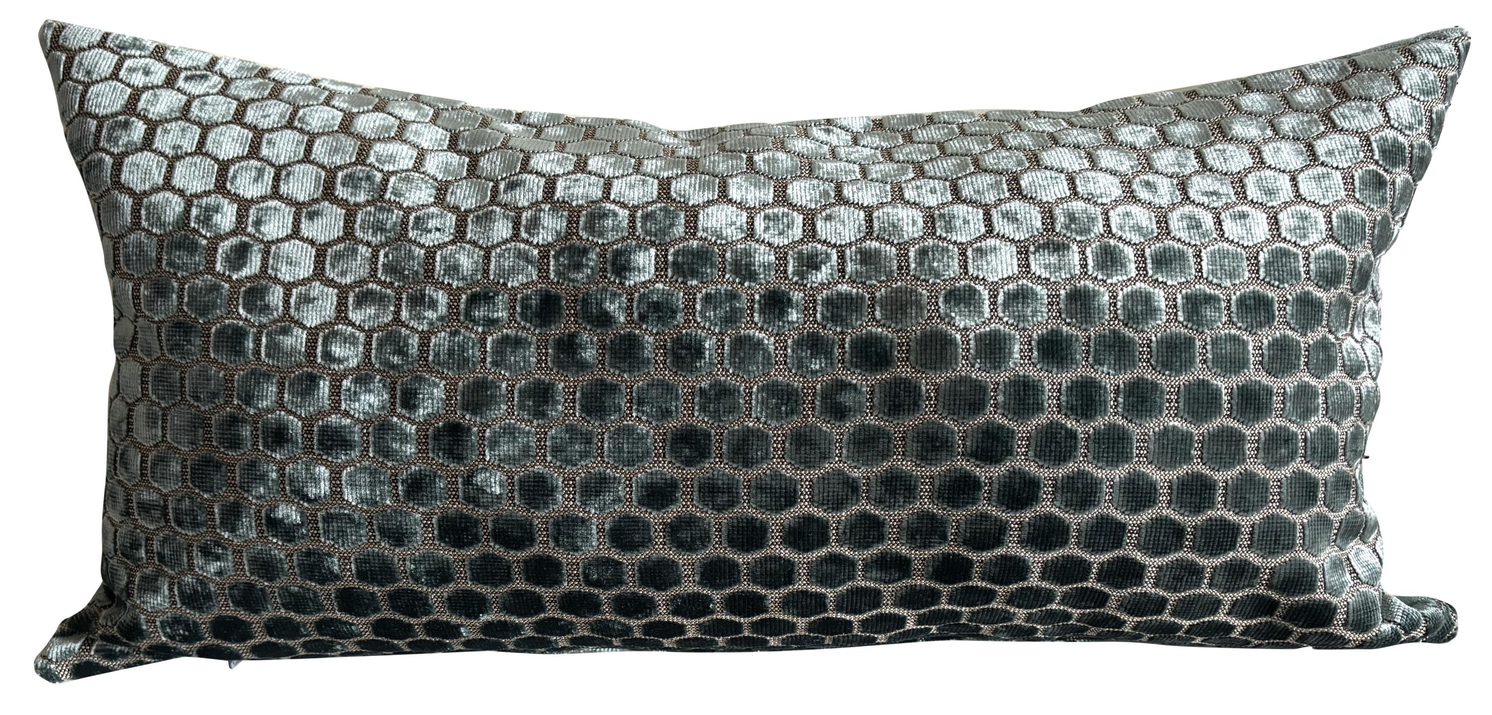 A small scale hexagon jacquard velvet with an almost irridescent feel with a fine woven ground.