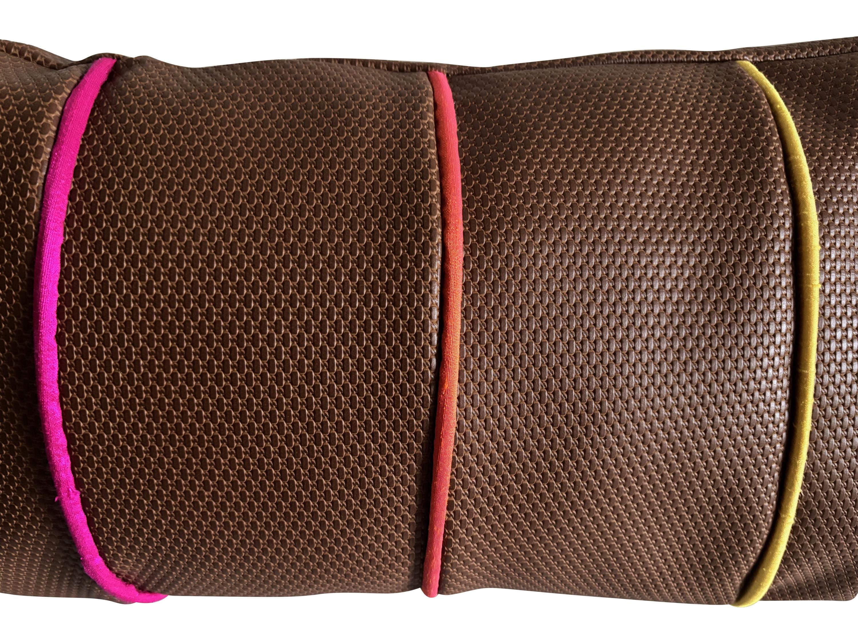 DESIGNERS GUILD VEGAN LEATHER BOLSTER CUSHION COVER in Rainbow Colourway.