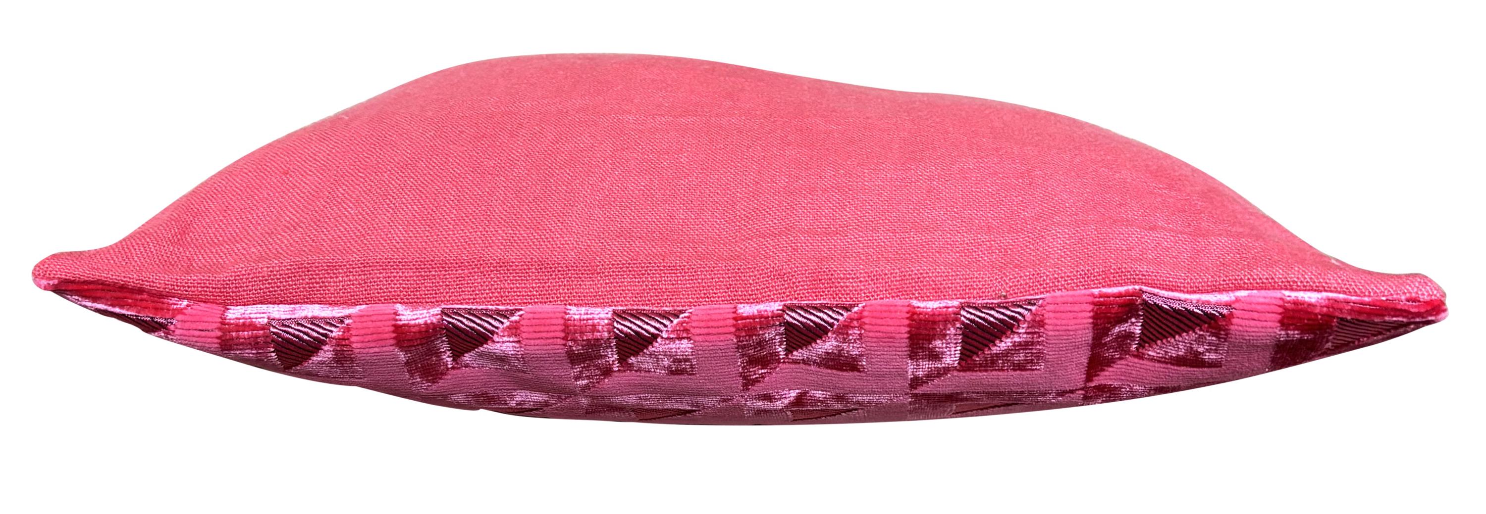 The cushion covers are backed in Designers Guild Brera Lino linen weave fabric in the fuchsia colourway and have a concealed zip on the bottom seam.